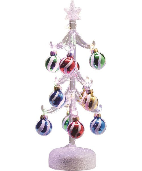 Clear Glass LED Tree 10 Inch with Swirl Ornaments